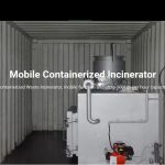 The containerized mobile incinerator mounted in ISO container before leave factory, pre-installation, no incineration house build construction, movable by truck and ultraviolet lamp sterilization inside.